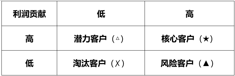 我们可以按“收入贡献”和“利润贡献”两个维度,把客户分为四类: